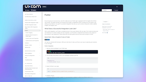 Access UXCam’s developer docs for Flutter here.