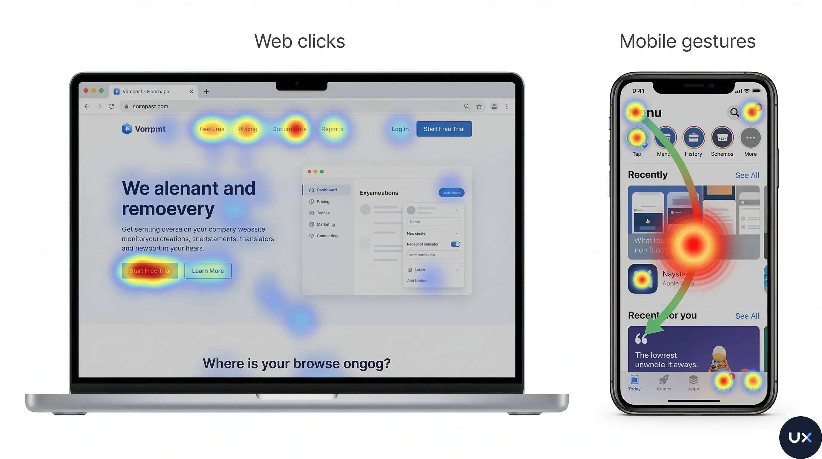 On mobile, they track finger touches on a native rendering surface. The data is richer: you see gestures that have no web equivalent, like multi-touch pinches or swipe abandonment.