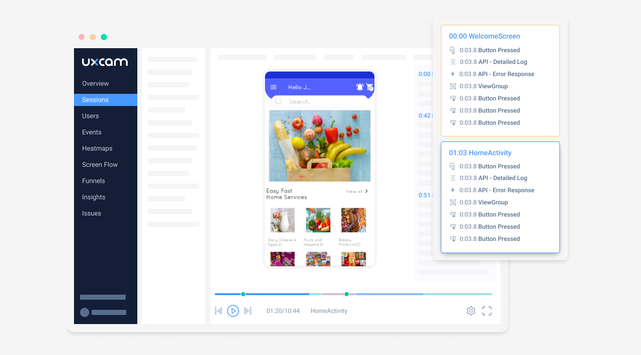 UXCam has a great mobile session recording feature so you can watch and replay how an individual uses your app. This way, you’ll get genuine insights into how long your users are spending navigating your app and identify areas that caused users to churn.