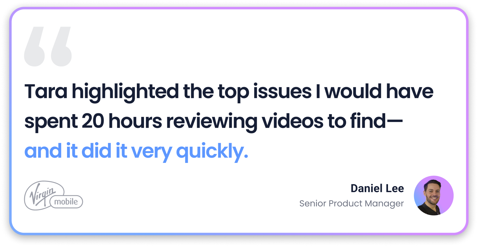Tara takes over the manual work; watching sessions, finding issues, connecting patterns, and turning all of that into clear insights and next steps. She helps your team move faster, align better, and make stronger decisions, without adding another tool to manage.