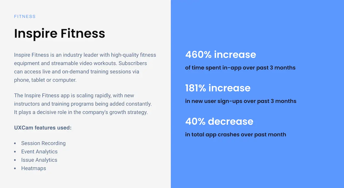 With the support of our session replays, heatmaps, and event and issue analytics, they increased user’s in-app time by 460% and new user sign-ups by 180%.