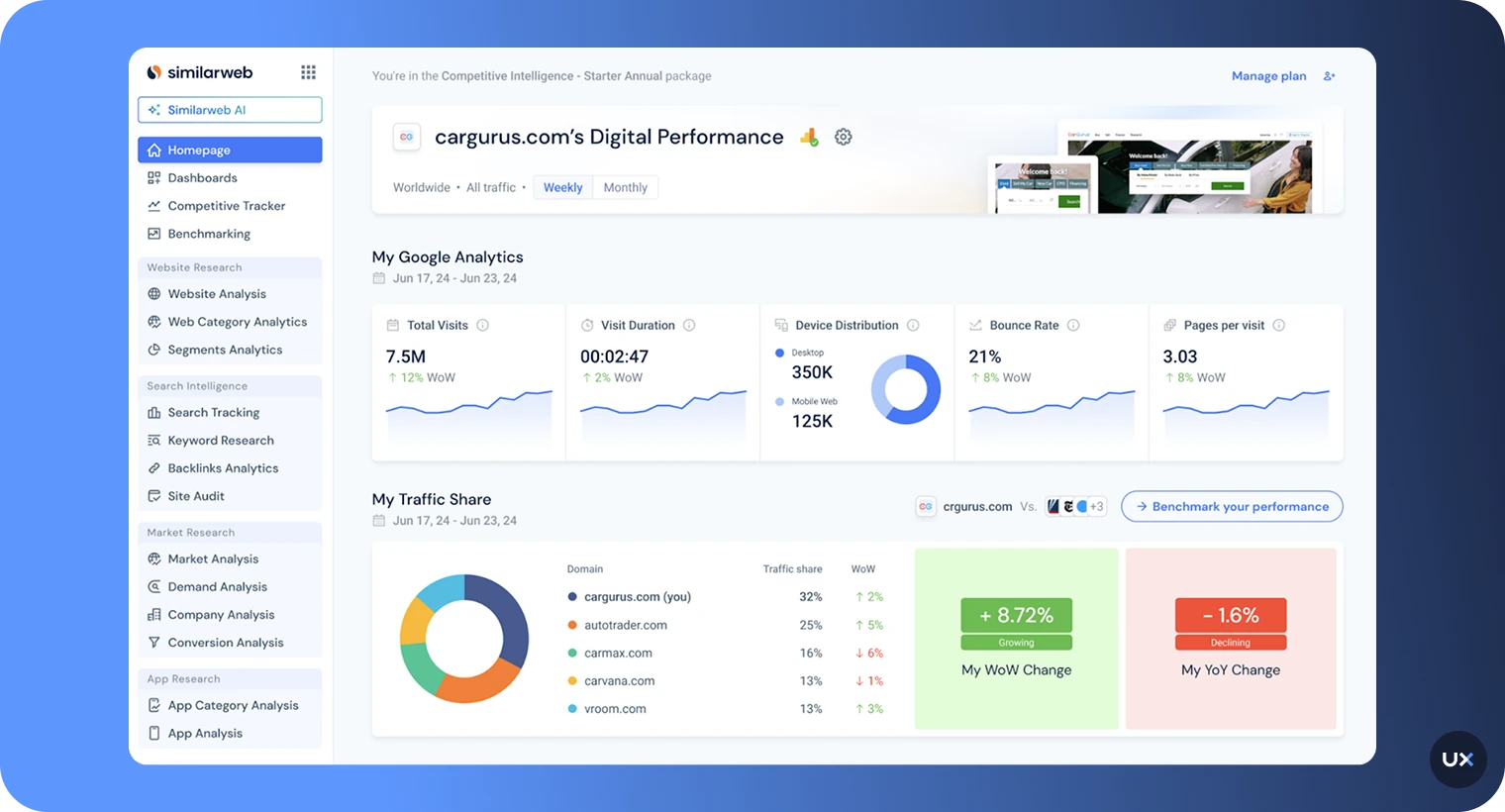 | SimilarWeb | Competitor benchmarking & traffic insights | Web, mobile | Free trial; paid from ~US$125/month or contact sales |