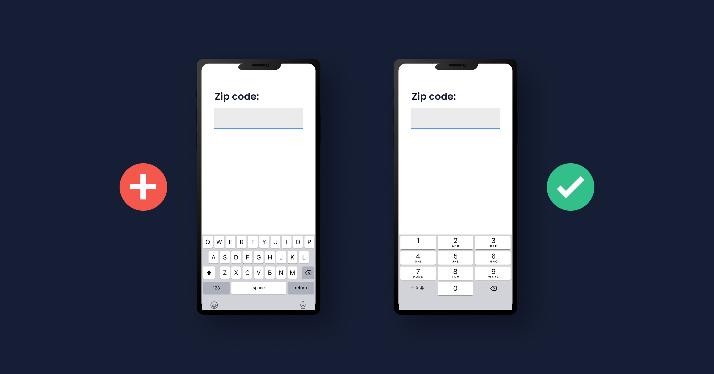 Si la información que te piden es un número de teléfono o un código postal, un teclado normal no servirá; ofréceles en su lugar un teclado numérico.