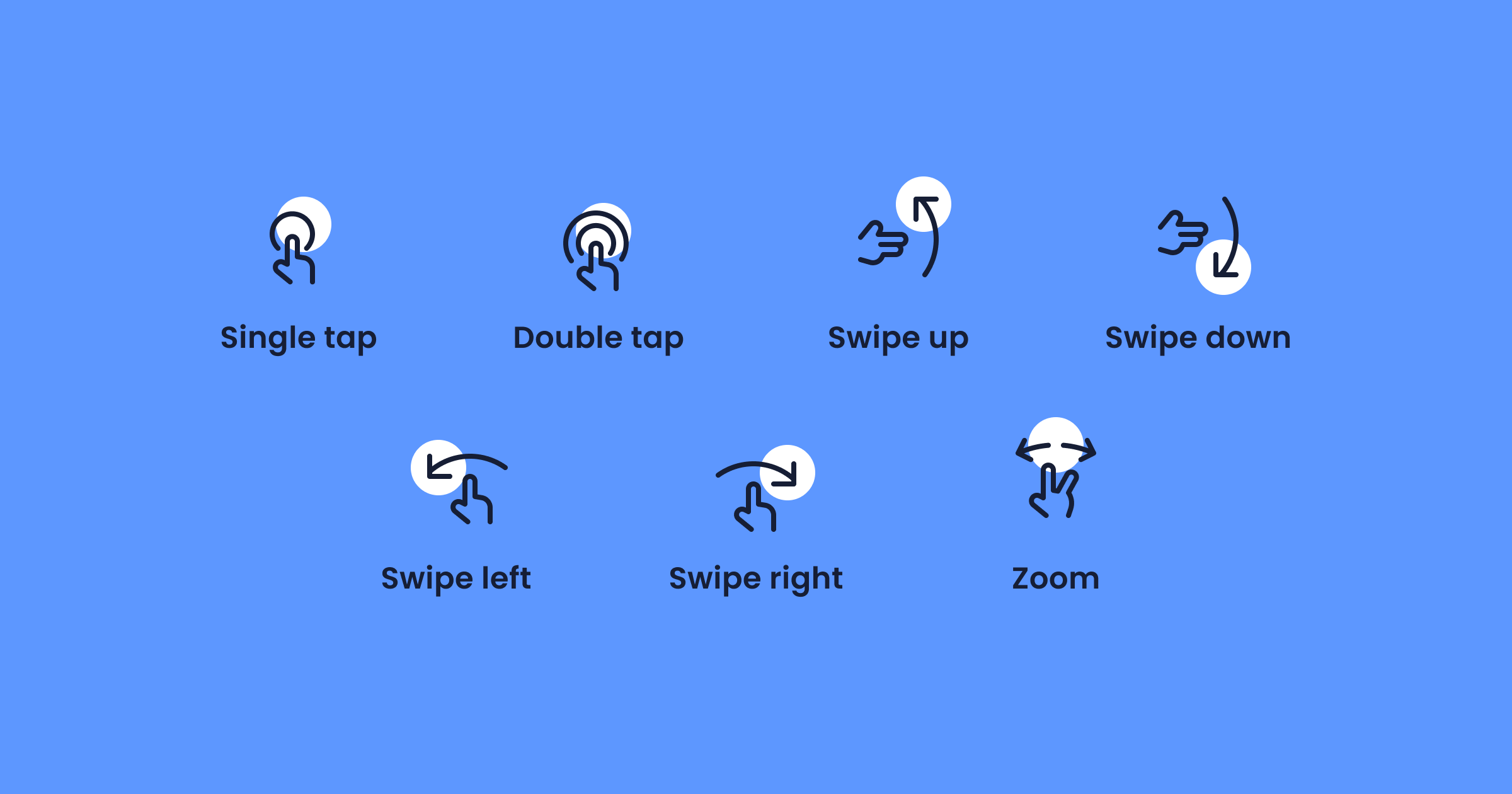 Los dispositivos móviles ofrecen más que simplemente tocar botones; también permiten a los usuarios realizar otros gestos. Algunos de los más comunes incluyen desplazamiento, deslizamiento, arrastrar hacia abajo y toques (largos, cortos o dobles). Arrastrar hacia abajo, por ejemplo, es un gesto común para actualizar una página.